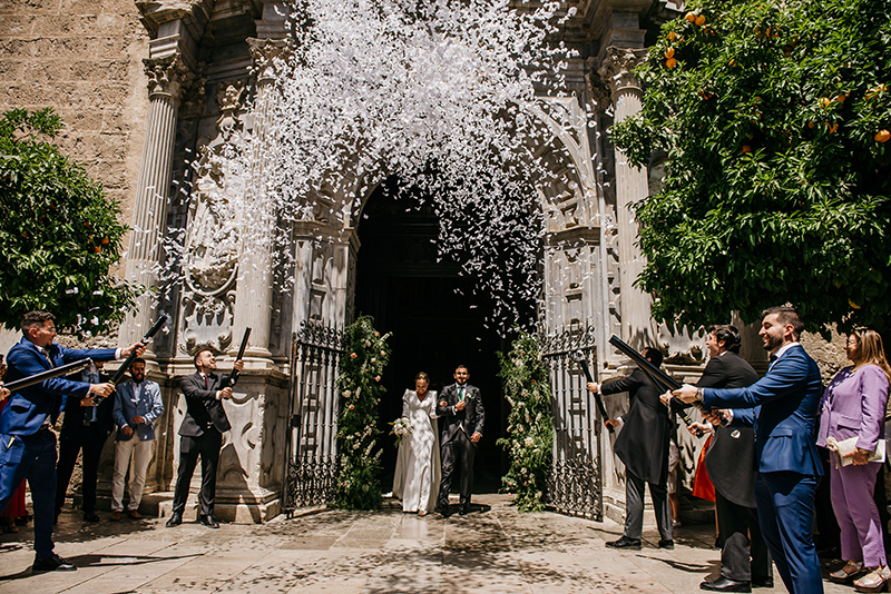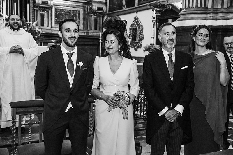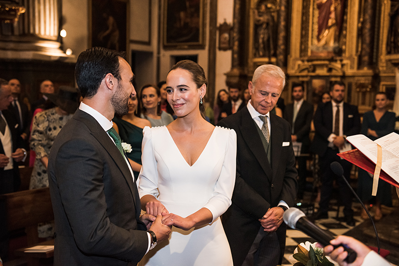 The ceremony took place at the Church of St. Justus and ShepherdThe church is a historic temple, ideal for couples who dream of a classic and emotional wedding in Granada. Its interior, full of baroque details and warm light, created an intimate and solemn atmosphere for the exchange of wedding rings.