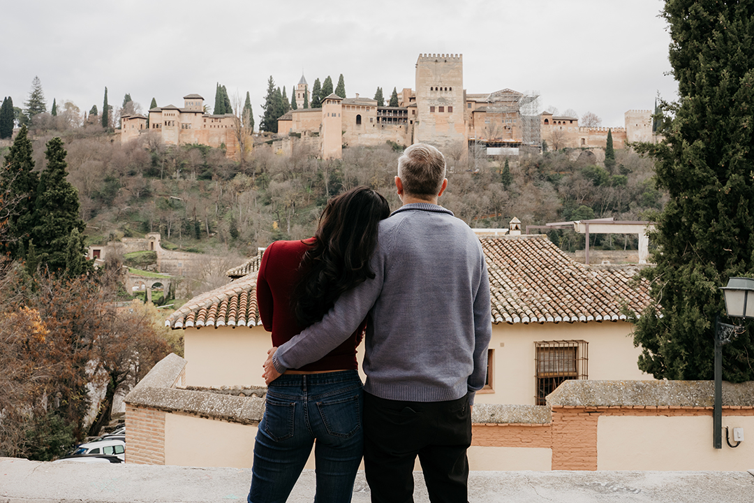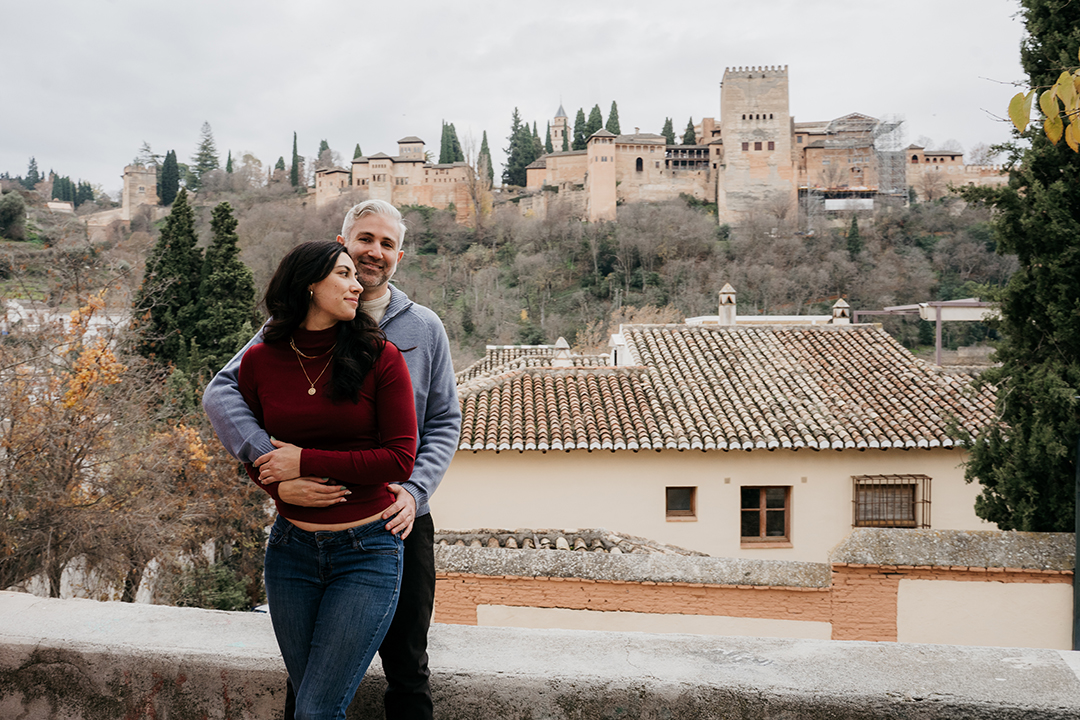 Después de semanas de planificación junto a Daniel, por fin llegó el día de la pedida de mano sorpresa para Marissa. Entre las distintas fórmulas que suelo proponer a las parejas para este tipo de momentos tan especiales, Daniel eligió una de mis favoritas: hacerle creer que me había contratado para una sencilla sesión de fotos por Granada, con la excusa de que nunca tenían fotos bonitas de sus viajes juntos.